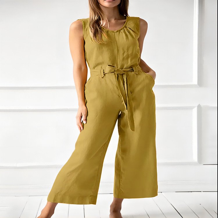 ชุดจั้มสูทแขนกุด ทรงขากว้าง แบบสีพื้นสง่างาม