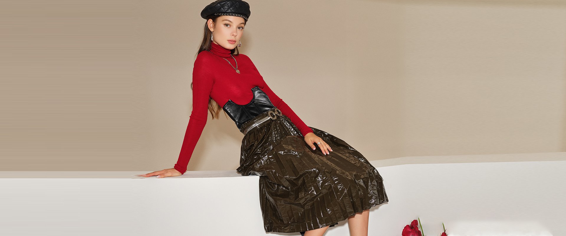 กระโปรงยาวจับจีบสไตล์ญี่ปุ่น