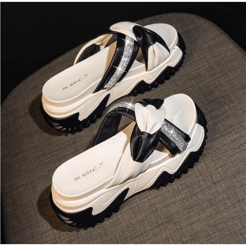 รองเท้าแตะพื้นหนาตกแต่งด้วยเพชร